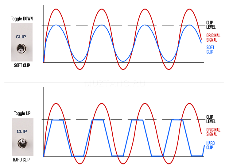 - Переключатель MUTEX в положении вверх для включения только одного эффекта за раз