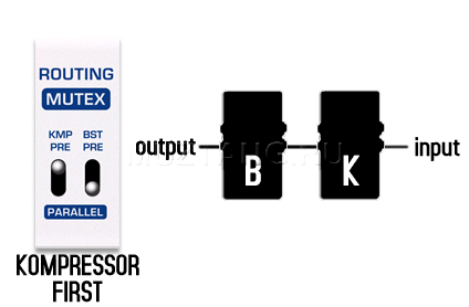 Педаль NUX Masamune Booster & Kompressor имеет внутреннюю маршрутизацию с 3 функциями: