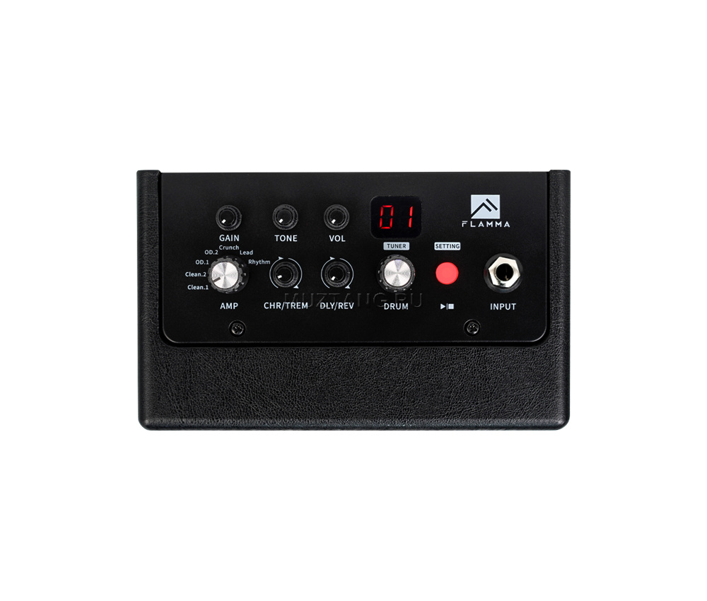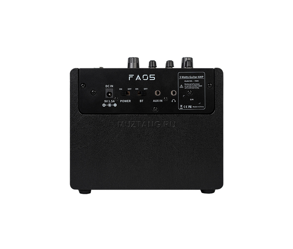 FA05 позволяет пользователям подключать предпочитаемые ими устройства через Bluetooth или через дополнительный аудиовход. Усилитель также оснащен разъемом для наушников для бесшумных занятий в любое время суток. FA05 имеет два чистых канала, два канала OD, а также канал кранча, лида и ритма, которые легко выбираются с помощью ручки. Кроме того, в усилитель включены эффекты реверберации, задержки, хоруса и тремоло, которые легко настраиваются из пользовательского интерфейса усилителя. Чтобы поднять уровень занятий на новый уровень, выберите один из 40 барабанных ритмов одним нажатием кнопки.