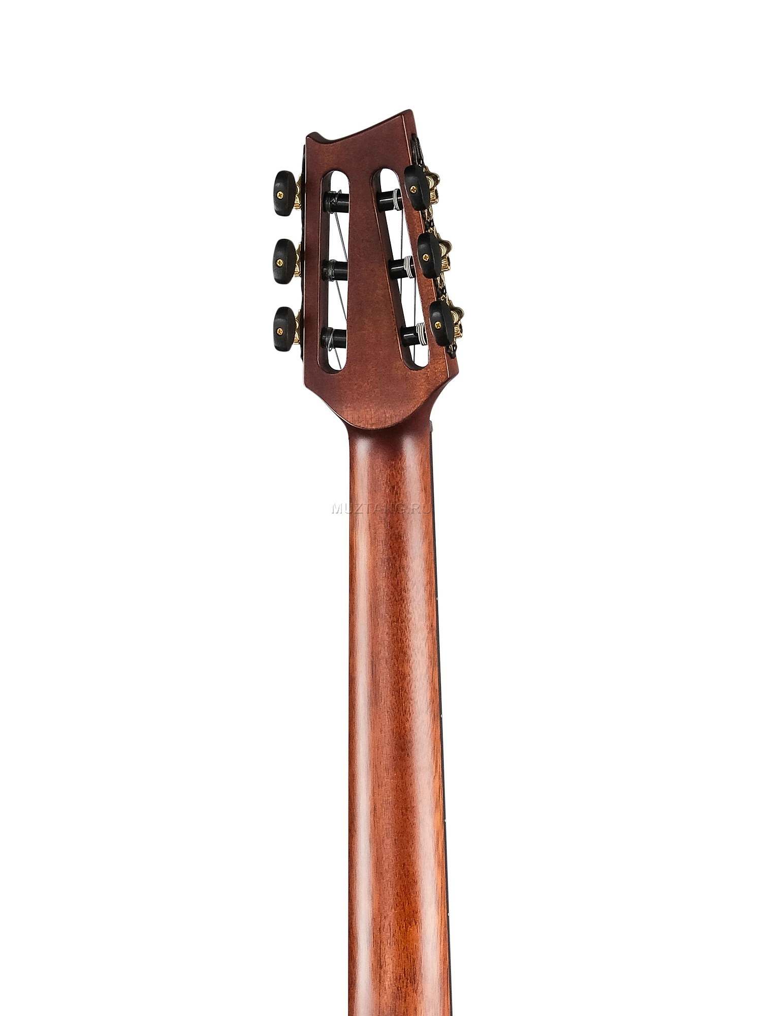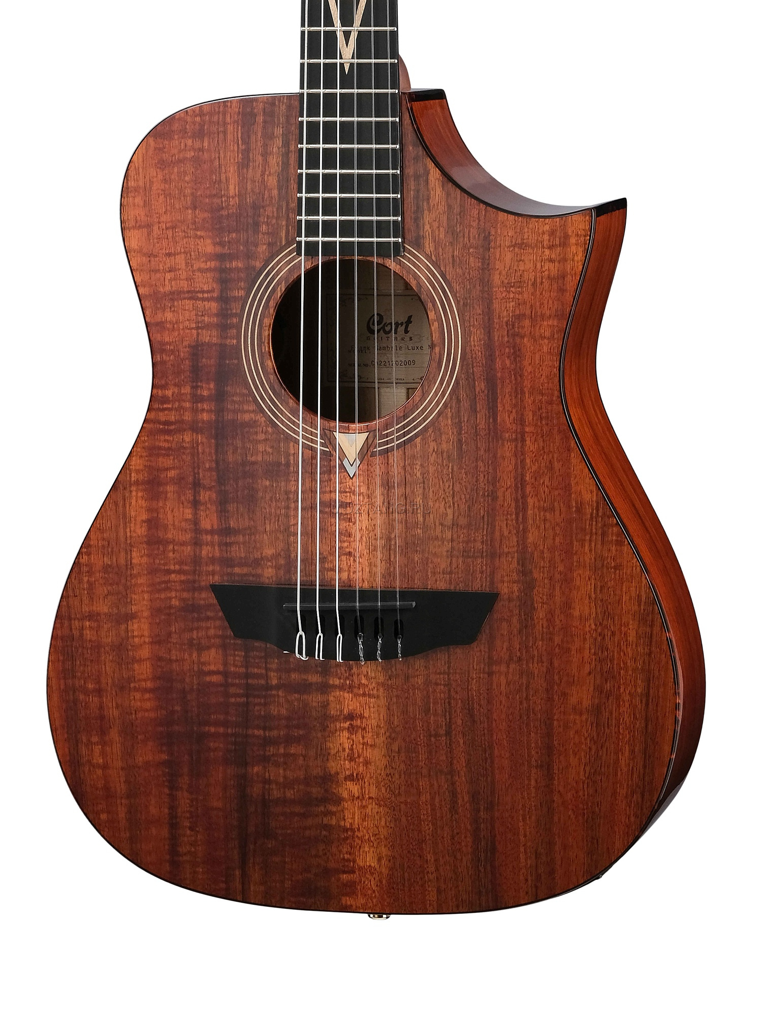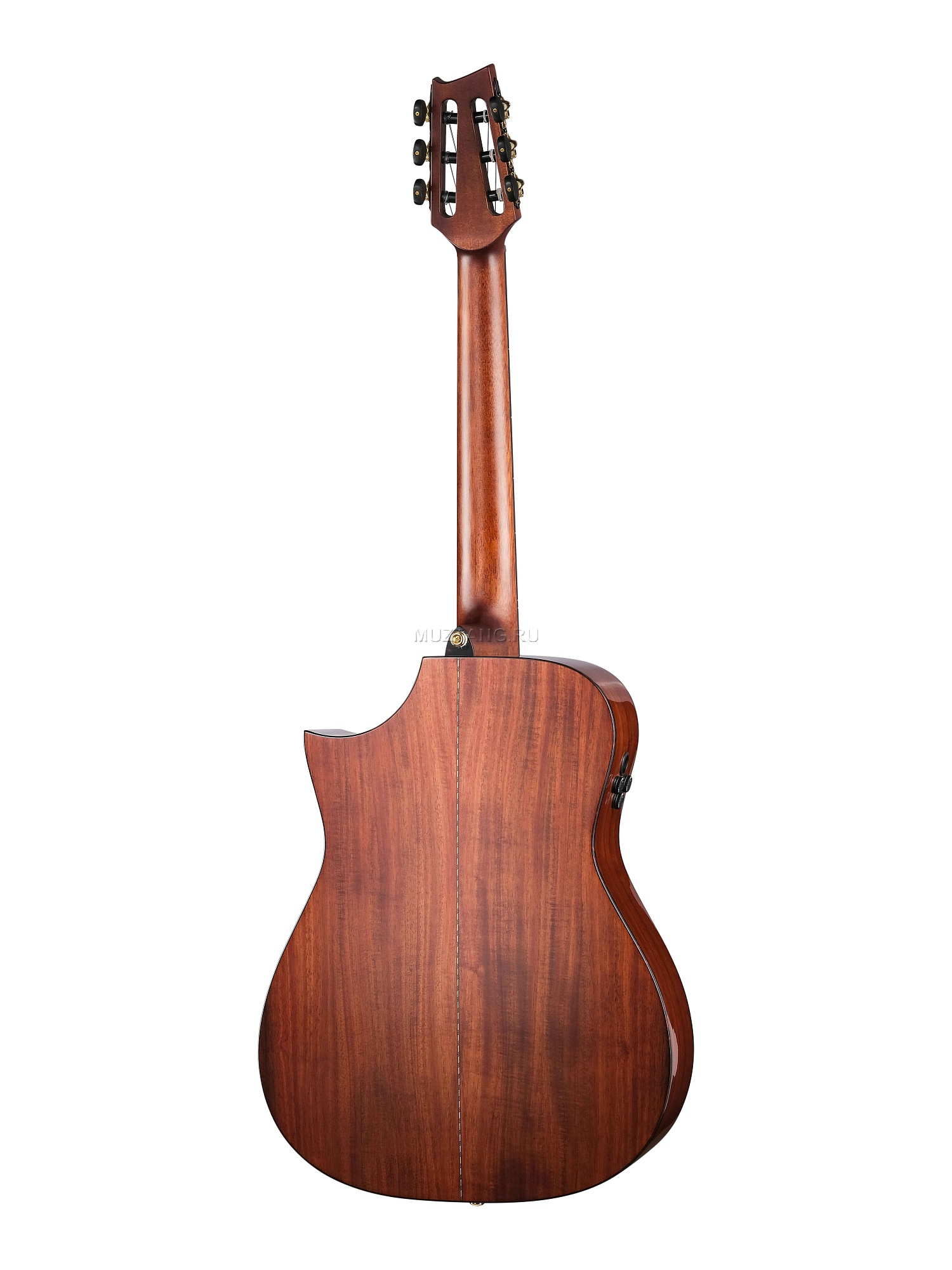 Cort с гордостью представляют Luxe Nylon - гибридный шедевр, созданный вместе с легендарным гитарным маэстро Фрэнком Гамбале (Frank Gambale) в ответ на его долгие поиски гитары с нейлоновыми струнами с быстрым и тонким грифом, подходящей для его сложного и утонченного стиля игры. Черпая вдохновение в дизайне его прошлой подписной модели, гитары со стальными струнами Luxe, элегантный стиль ар-деко можно найти в обновленной инкрустации накладки грифа, а также в дизайне розетки. Корпус Luxe Nylon изготовлен из массива блеквуда, эстетической привлекательной древесины с богатым сбалансированным тембром.